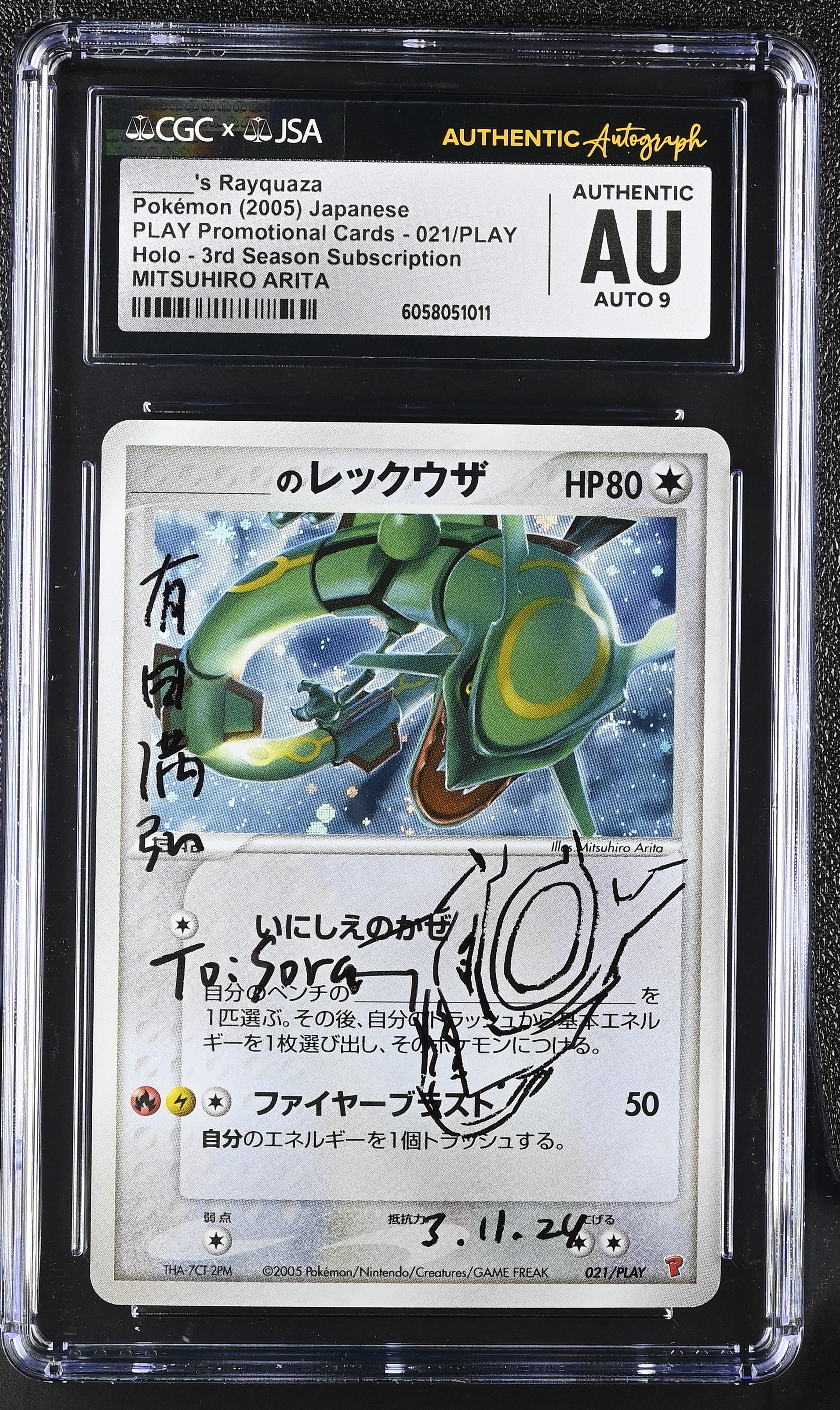 2005 POKEMON JAPANESE PLAY PROMO HOLO RAYQUAZA #21 ARITA AUTO 9 CGC AUTH