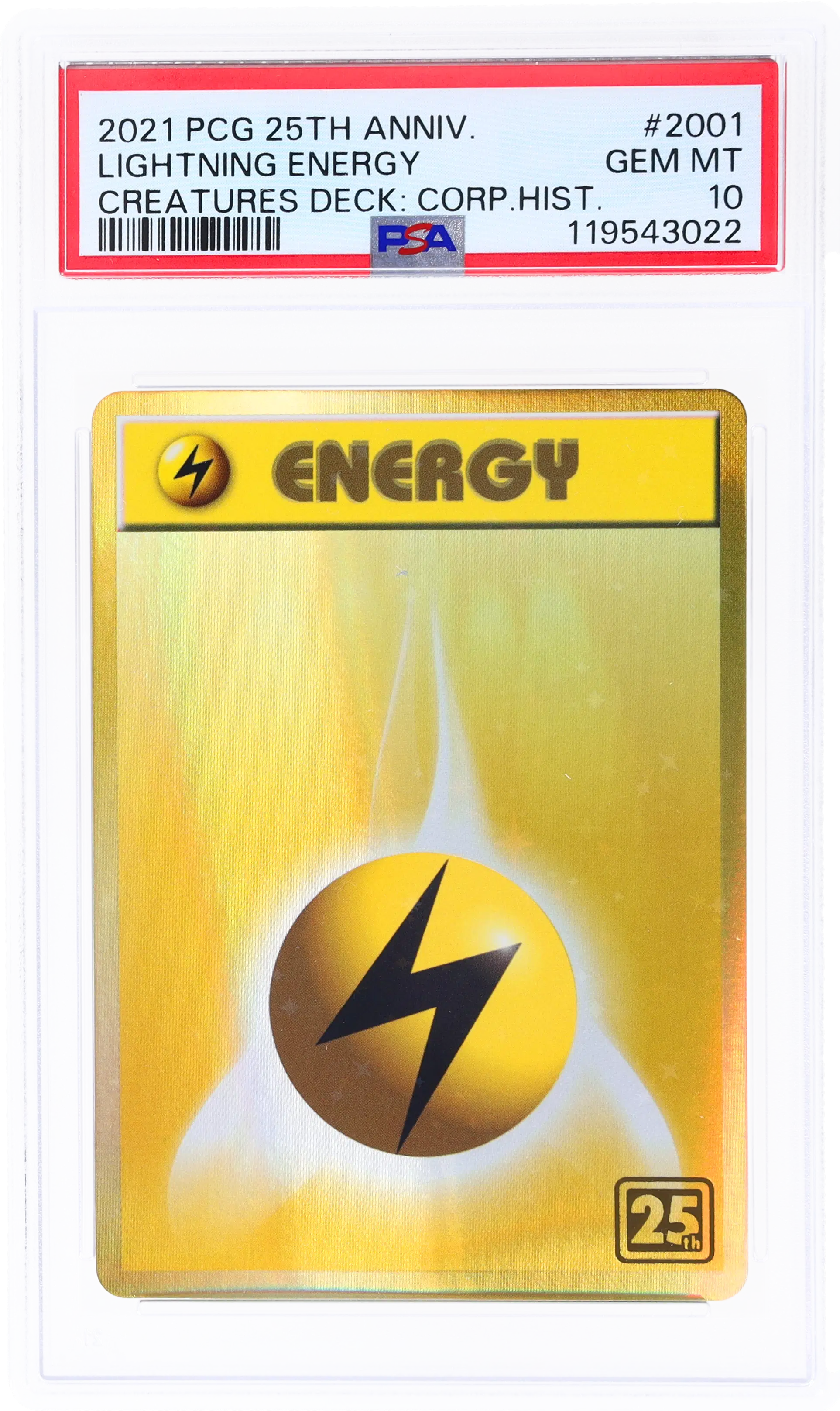 2021 POKEMON 25TH ANNIVERSARY CREATURES DECK CORPORATE HISTORY LIGHTNING ENERGY #2001 PSA 10